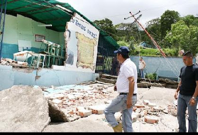 | a escuela “Pablo Emilio Ortiz” quedó totalmente destruida. El alcalde Erasmo Gómez estuvo al frente de la emergencia |